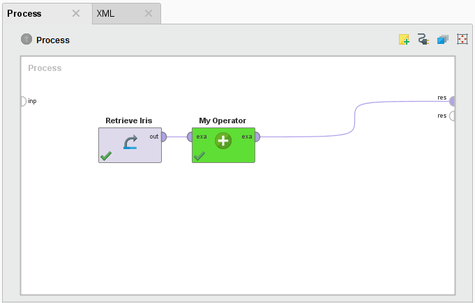 Install the extension again (with the Gradle task) and restart RapidMiner Studio. You can see that the operator now has an input and an output port.