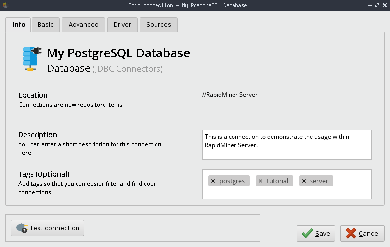 The connection is nearly ready to be used in a process and visible in the web interface of RapidMiner AI Hub. RapidMiner execution now needs to know what values should be used for the parameters you've just set as injected. In order to do so, please follow the instructions outlined in the set user-specific parameter values section. You might also want to consider sharing your connection.
