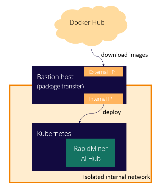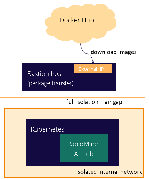 Note that this example is an edge case: the standard way of installing RapidMiner AI Hub on Kubernetes does not include an air gap. Nevertheless, for the interested user, these notes may provide a valuable reference, provided that the user is sufficiently experienced with Kubernetes.