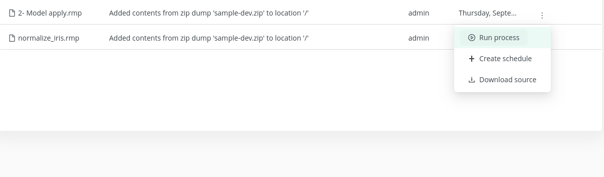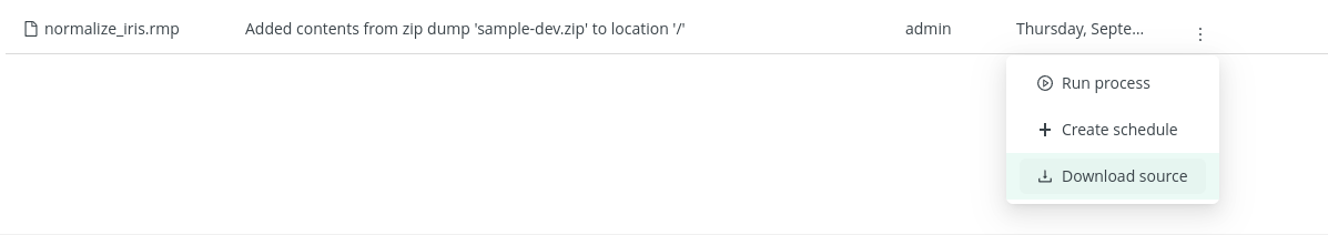 3. Browse through the folder structure to find your process and click on it. (Note that if it is a process you have scheduled or recently executed, you can also find it in the process scheduler.) You can view the process's XML by downloading it to your machine with Download source: