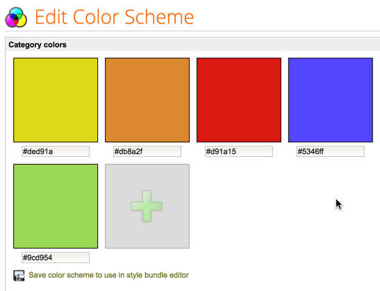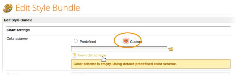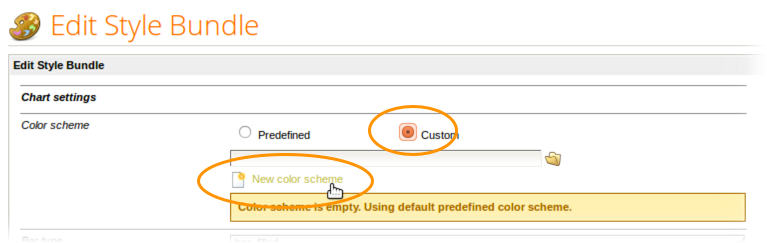 Alternatively, you can change colors from within the Style Bundle editor. Simply open the style bundle, click Custom as the Color scheme, and click on the New color scheme link.