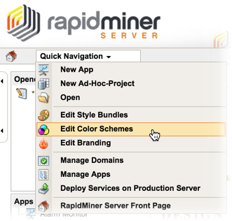 RapidMiner Server is configured with a default color scheme. You can, however, select a different color scheme as your default palette and also configure color palettes individually for each web app.