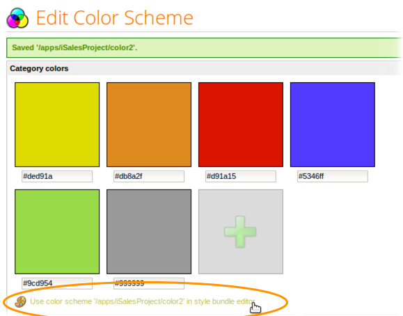 Clicking Use color scheme in style bundle editor returns you to the Edit Style Page where the file location of the new palette is supplied as a custom color scheme.